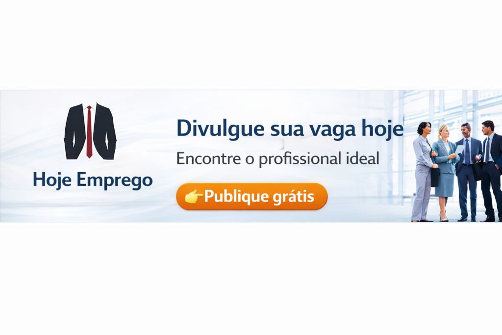 1. Observação: O Hoje noticias e Empregos atua apenas como um intermediário entre empresas e candidatos, não participando do processo seletivo e não cobrando qualquer taxa pela divulgação. Fique atento(a) a possíveis tentativas de golpes: NUNCA PAGUE ou forneça dados pessoais para obtenção de um CURSO, EMPREGO ou ENTREVISTA.